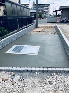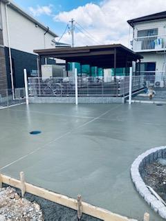 今日の作業現場。岡崎市外構コンクリート工事、小牧市外構コンクリート工事、南区星崎外構コンクリート工事、安城市ディーラー左官工事。