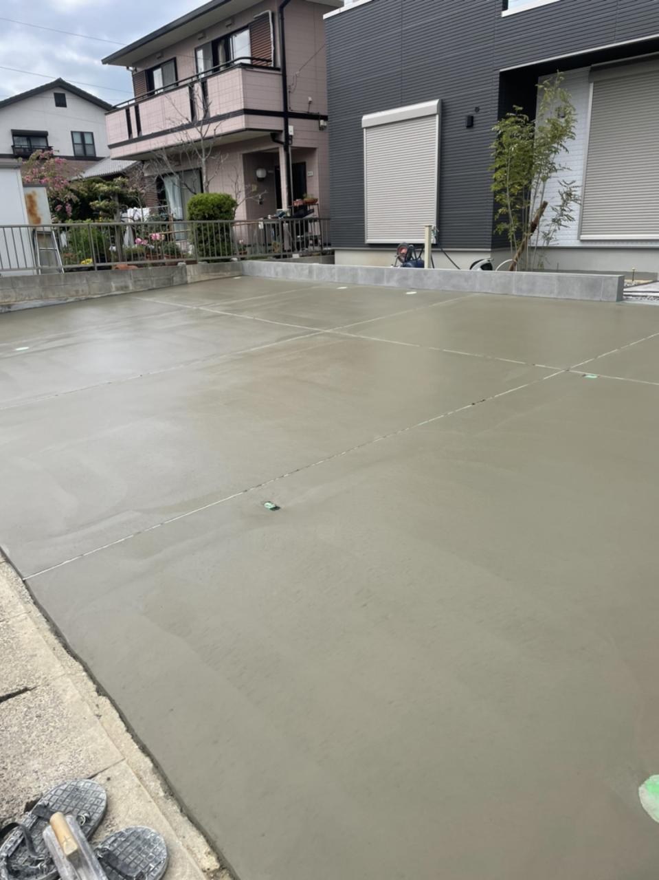 今日の作業現場。刈谷市外構コンクリート工事、半田市外構コンクリート工事、三重県菰野コンクリート工事、大府市コンクリート工事、中区左官工事、中村区左官工事。