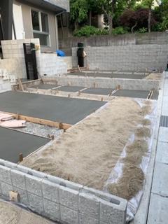 今日の作業現場。守山区マンションコンクリート工事、勝川コンクリート工事、緑区外構コンクリート工事、呼続外構コンクリート工事。
