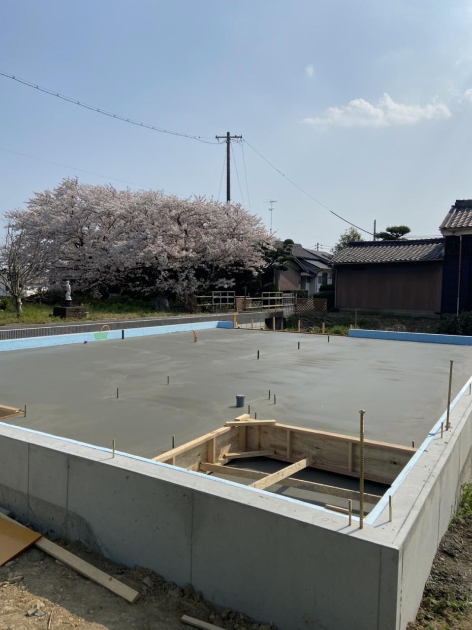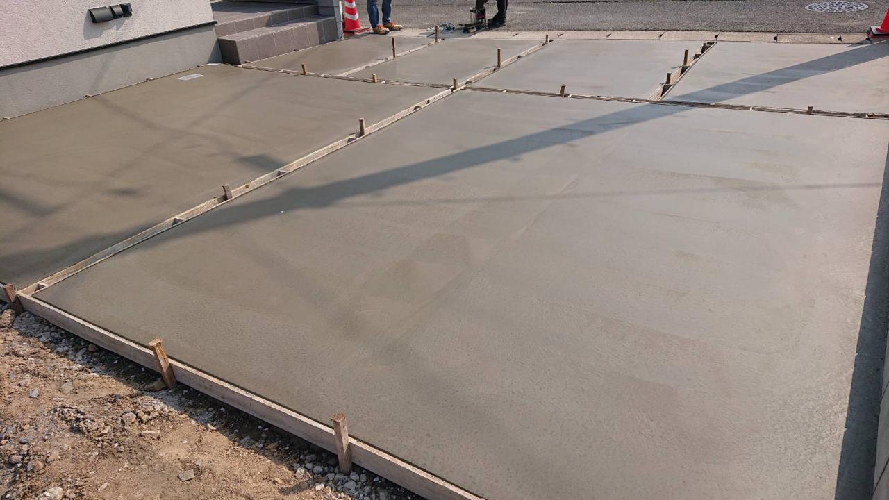今日の作業現場。西尾市土間コンクリート工事、蒲郡市外構コンクリート工事。