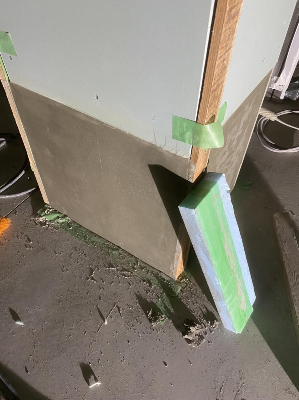 今日の作業現場。多治見市コンクリート工事、半田市カチオン補修工事、亀崎レベリング工事、三好市左官工事、岡崎市左官工事。